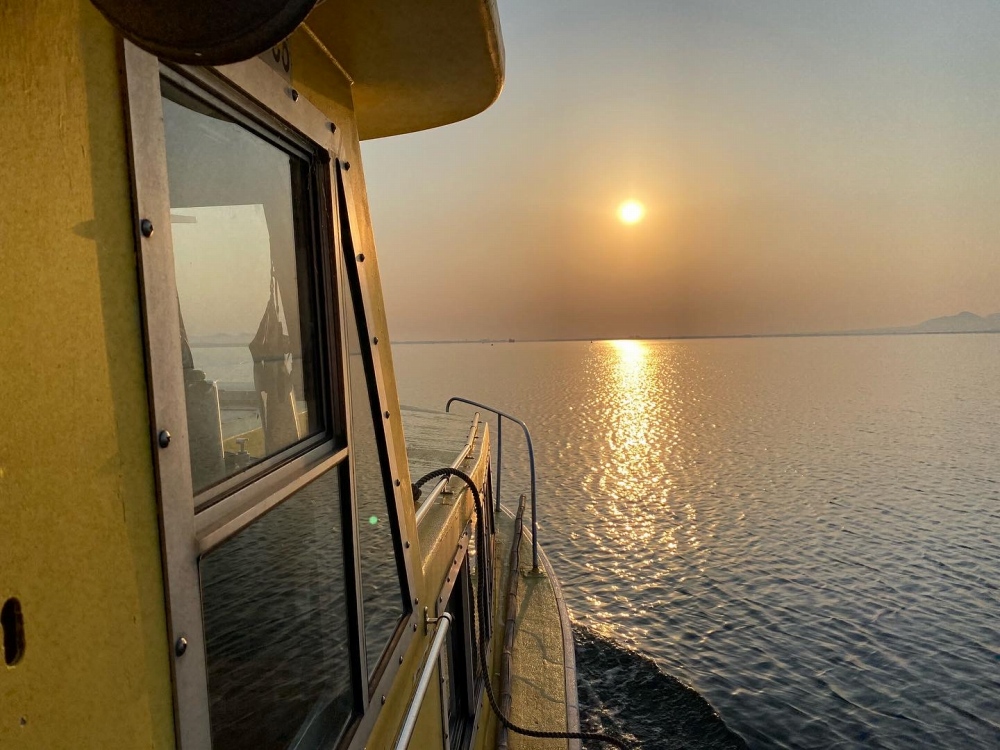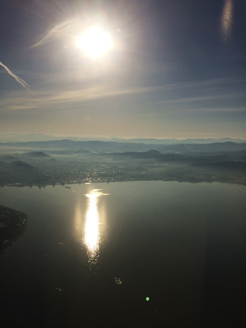 宍道湖に風土記の丘方面からさす銅剣の朝陽