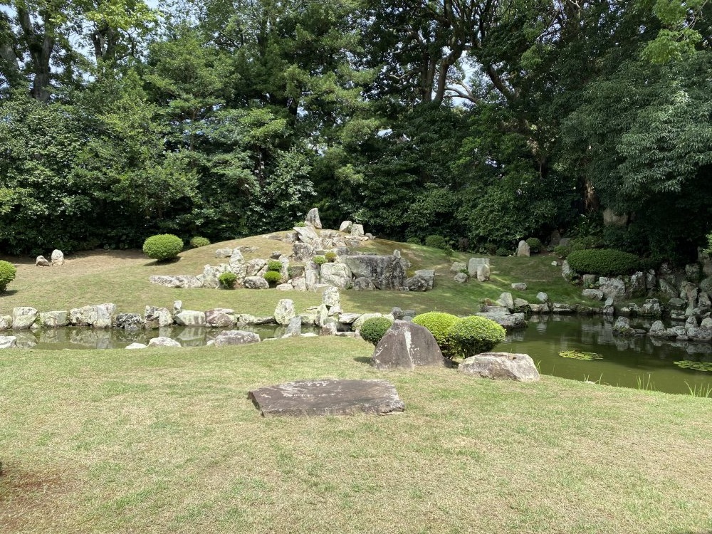 毎年3月半ばには枝垂れ桜が華やぎを添え、5月には一面のツツジ、夏は緑が涼しく、秋には大きな楓が赤く染まっています。国指定史跡及び名勝、国登録文化財、県指定有形文化財。」